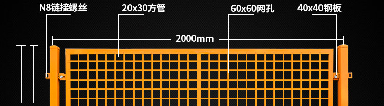 1.基坑護欄的邊緣保護由20×30mm的矩形矩形管制成。地面已牢固固定。